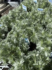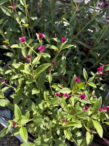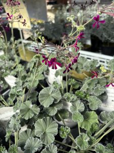 シルバーリーフに濃い赤紫の小さな小花を花茎の先に