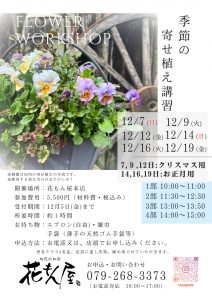花もん屋 ホーム > イベント情報 > 12月寄せ植え講習のお知らせ
