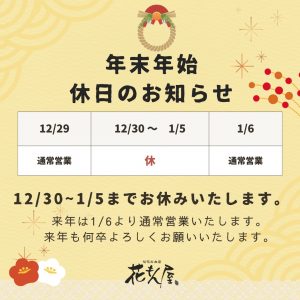 ※12/30〜1/5は年末年始のお休みとさせていただきます。ご迷惑をおかけいたしますが、何卒よろしくお願いいたします(^ ^)