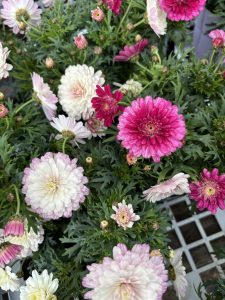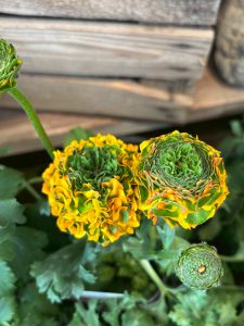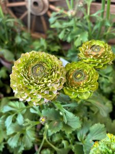 ポンポンのような幾重にも重なる花びらと個性的な花色が特徴的な品種です。